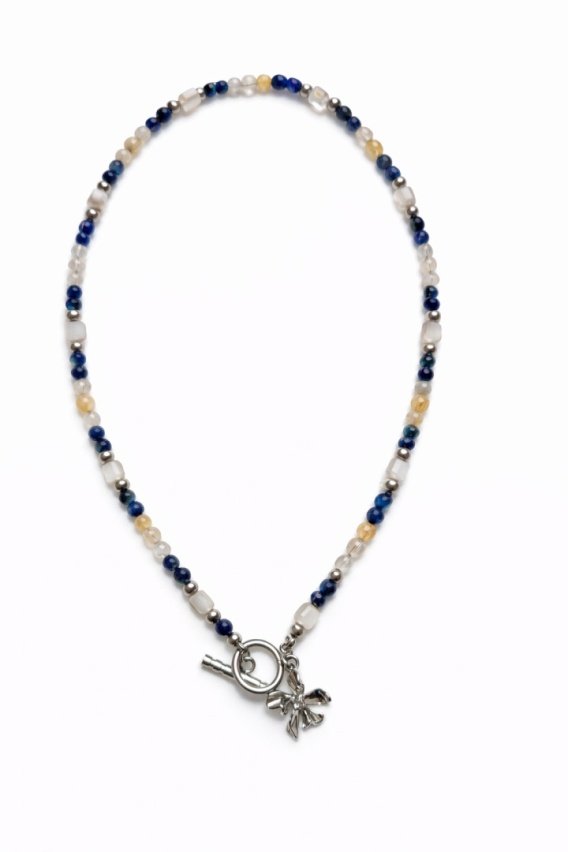 Srebrne elementy ze stali szlachetnej podkreślają głębię barw kamieni i nadają całości nowoczesnej, minimalistycznej elegancji. To naszyjnik–talizman dla osób, które chcą działać w zgodzie ze sobą, z klarowną intencją i spokojną siłą.