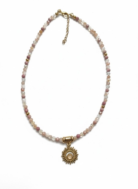 Subtelny, a jednocześnie pełen ciepła naszyjnik z kolekcji Aura One Collection, stworzony z myślą o radości, miłości do siebie i wewnętrznym świetle. Połączenie miękkich, różowych tonów z energią słońca tworzy biżuterię, która otula dobrą energią i dodaje lekkości każdemu dniu.